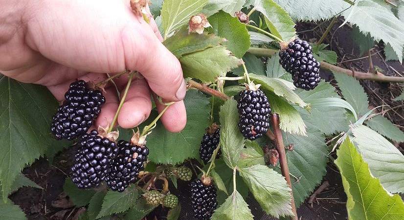 На взрослых кустах плети растут очень быстро, формируют множество боковых ответвлений и плодовых веточек. Листья данной ежевики отличаются от других сортов — они светло-зеленые, с мелкими зазубринами по краю и махровой поверхностью. Корневая система у ежевики мощная, причем она тем лучше развита, чем больше зеленой массы вы оставляете при обрезке и нормировании плетей.