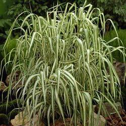 Фалярис Elegantissima (Элегантиссима). Длиннокорневищный многолетний злак. Листья линейные, до 2 см шириной, с белыми полосками. Листья и стебли не поникают даже во время сильных морозов, хотя и теряют окраску. Колоски собраны в густые колосовидные метёлки до 20 см длиной.