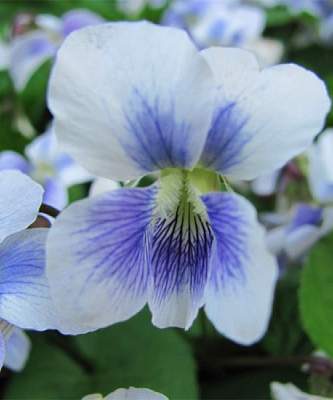Фиалка душистая Hungarian Beauty (Хунгариан Бьюти). Бесстебельный корневищный низкорослый многолетник 7-20 см в высоту и 15-20 см в ширину. Имеет белые цветки с фиолетовыми прожилками. Цветет ранней весной и иногда периодически поздним летом.