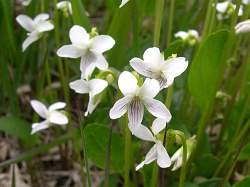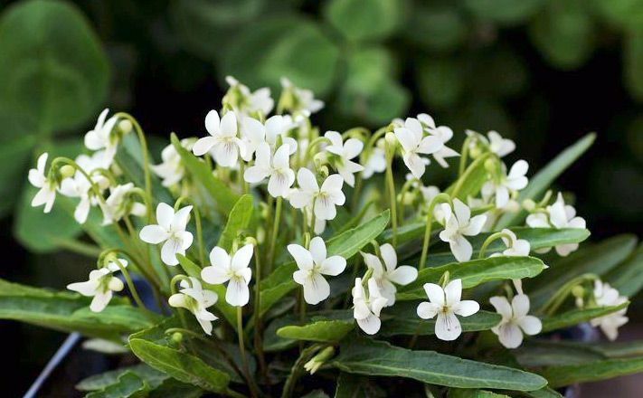 Фиалка Патрена. Стройная миниатюрная фиалка с красивыми белыми довольно крупными цветками. Многолетнее травянистое растение до 15 см высоты с коротким корневищем. Листья продолговатые, на длинных окрыленных черешках, похожих на листья фиалки маньчжурской. Цветки 2- 2,2 см в диаметре.
