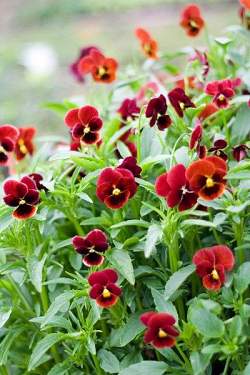 Фиалка рогатая Rubin (Рубин). Цветки красно-малиновые. Типичный многолетник, но требует омолаживания путём деления или пересева. Часто даёт самосев. Цветёт очень долго и обильно, но со второй половины лета цветки становятся мельче. Срез многочисленных семенных коробочек продлевает и улучшает цветение. Высота кустиков может быть от 10 до 25 см.