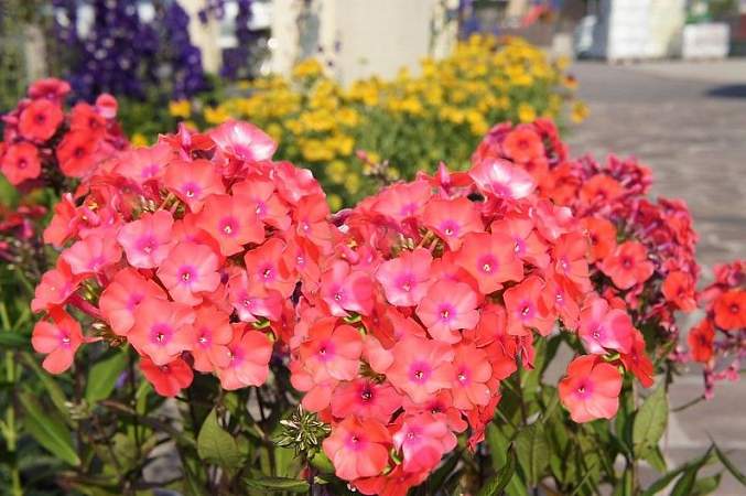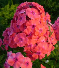 Флокс Adessa Orange (Адесса Ориндж). Невысокий компактный куст из прочных побегов. Цветки ярко-красновато-оранжевые с более темным колечком в центре. Зацветает в конце июля — начале августа. Устойчив к грибным заболеваниям.