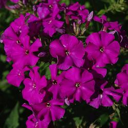 Флокс Aida (Аида). Цветки колесовидной формы, насыщенного цвета, от красно-малинового бархатного до фиолетового. Глазок от красного до пурпурного. Соцветие пирамидальное, средней плотности. Цветение в июле-августе. Куст высотой 50-60 см, компактный, густой. Сорт устойчив к грибным болезням.