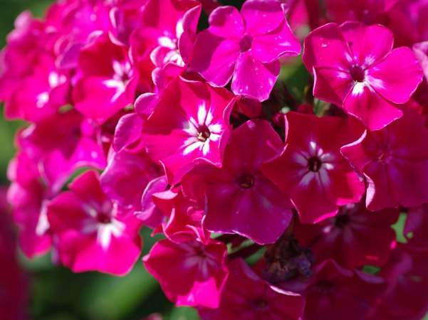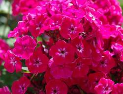 Флокс Александра. Цвет насыщенный ярко-розовый с большой белой звездой. Цветок колесовидный с перекрывающимися лепестками. Соцветие округло-коническое, большое, плотное. Высота взрослого растения 70 см. Размер цветка 3,5-4 см.