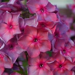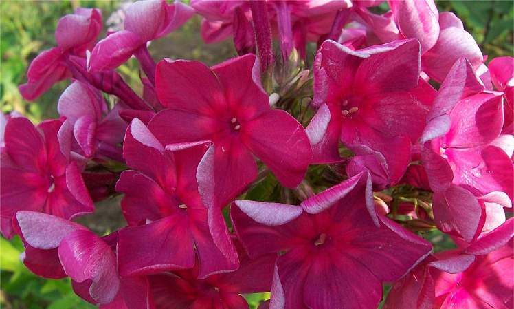 Флокс Анна Каренина. Цветки крупные, красивой формы. Пепельная дымка по розово-красному полю лепестков. Яркий рубиновый глазок. Великолепный сорт с дымчатым напылением, победитель всевозможных выставок! Соцветия крупные. Прочные стебли, обильная листва. Хорошо разрастается. Высокая устойчивость к болезням.