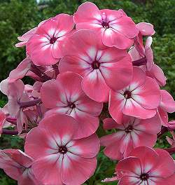 Флокс Аня Гаганова. Теплый кораллово-розовый тон, в центре беловатая звезда. Цветок колесовидной формы. Соцветие большое, округло-коническое, плотное. Быстро размножается. Зимостойкий. Один из лучших отечественных сортов.