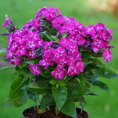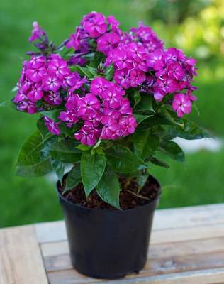 Флокс Bambini Desire (Бамбини Дизайр). Крупные, очень ароматные, яркие соцветия на компактных стеблях высотой всего 25-30 см. Цветки фиолетово-розовые с небольшими светлыми пятнами в центре, собраны в крупные щитковидные соцветия. Период цветения июль-август.