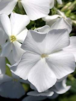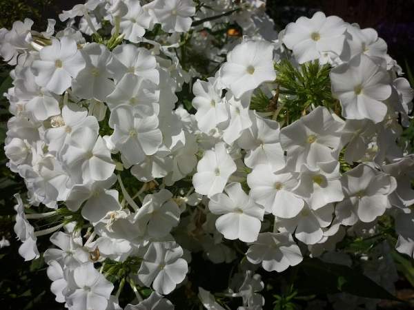 Флокс Белый клык. Белоснежный, трубка зеленоватая, бутоны белые. Соцветие очень крупное, разветвленное, характерной формы со слегка наклоненной верхушкой. Куст мощный, прямостоячий, эффектный. Разрастается умеренно.