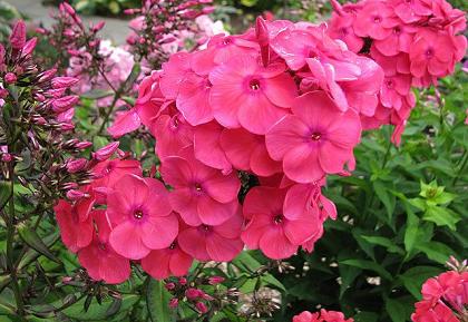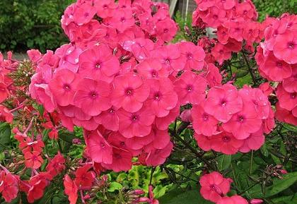 Флокс Беркут. Цветок 4,2 см в диаметре, красно-малиновый с малиновым кольцом и небольшим посветлением. Не выгорает. Побеги прочные, прямые, толстые, темного цвета. высота до 70 см. Очень эффектный!