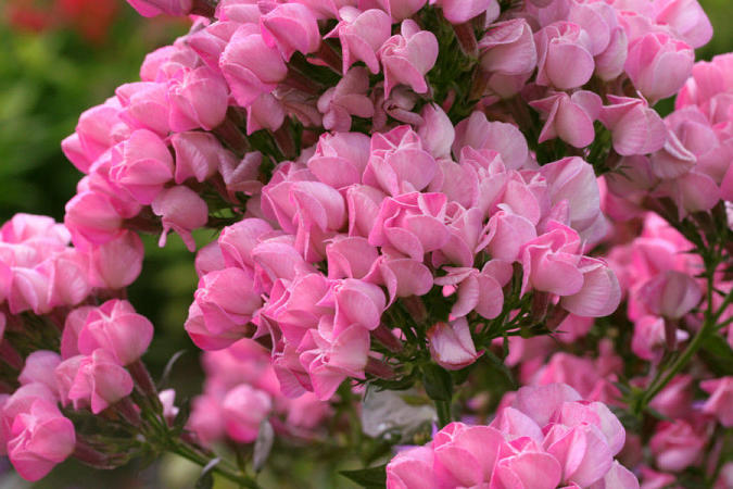Флокс Бутоник. Крупные густо-розовые полураскрытые бутоны, плотно прижатые друг к другу. Они не распускаются до конца, а остаются в таком виде на месяц-полтора. Куст компактный, прочный, хорошо разрастается. Интродуцирован Л.Ф. Голубицкой в 1993 году.