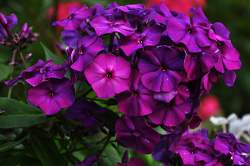 Флокс Черномор. Интенсивно-тёмно-синевато-фиолетовый с небольшим высветлением около центра; вечером и в пасмурную погоду тёмно-синий. Отличается очень густым темным оттенком фиолетового тона, чернильно-синий в сумерках.