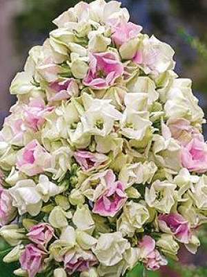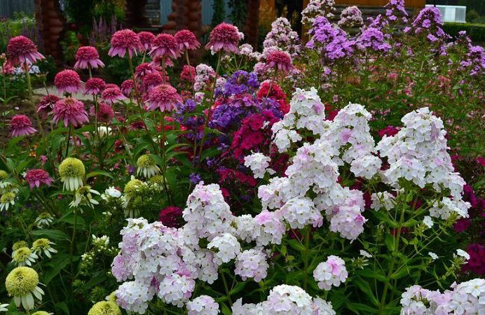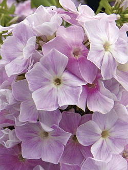 Флокс Cool Water (Кул Уотер). Высота 70 см. Белые с сиренево-розовыми неравномерными штрихами цветки становятся более насыщенными по мере роспуска. Соцветия плотные, цветение обильное и продолжительное. Куст компактный