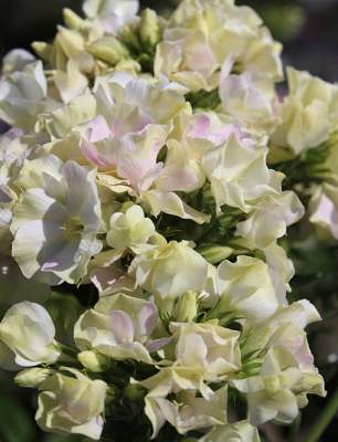 Флокс Creme de la Creme (Крем де ла Крем). Цветок оригинальной окраски, цвет от зеленовато-белого до нежно-розово-кремового. Высота куста 90 см.
