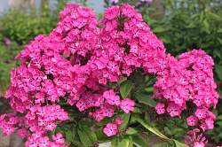 Флокс Цыганская Венгерка. Цветки диаметром 2,8-3,0 см, розово-пурпурные, матовые с маленькими светлыми лучиками. Лепестки разделены, слегка продольно-волнистые. Соцветия крупные, плотные. Кусты высотой 80-90 см, среднего срока цветения. Нарастает хорошо. На выставке "Мир флоксов" (Петербург, 2014) был особо отмечен за плотность соцветий.