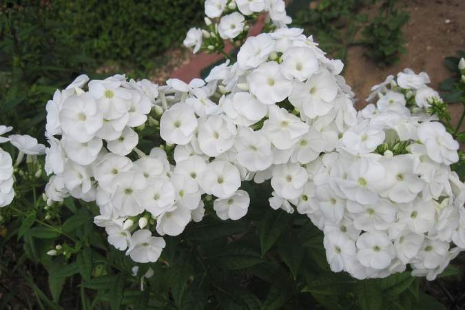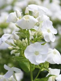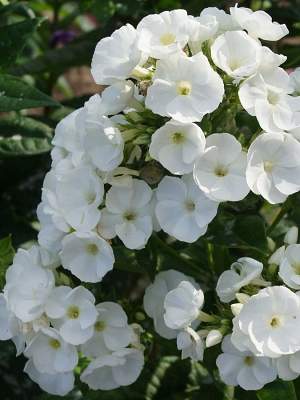Флокс Danielle (Даниэль). Цветки диаметром 3 см, красивые белоснежные, колесовидной формы, устойчивые к атмосферным воздействиям. Соцветия овально-конические, большие, плотные.