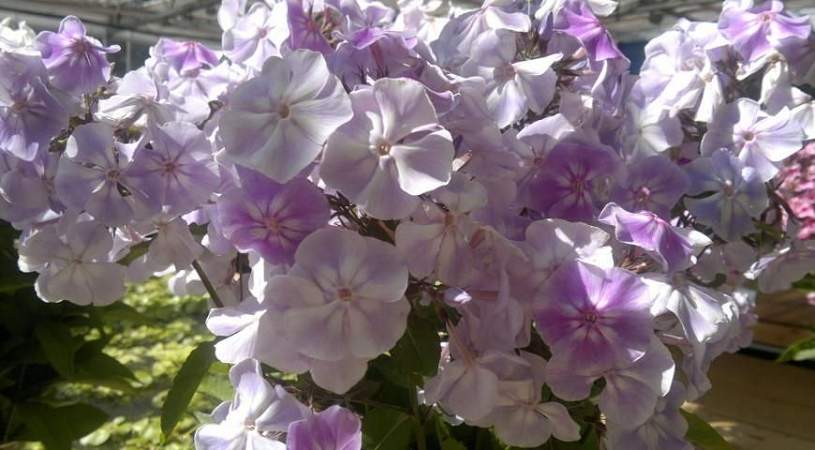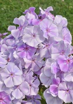 Флокс Эликсир. Крупноцветковый красавец от Елены Константиновой. Цветки до 5,2 см в диаметре. Сиреневые с темно-сиреневым колечком и белыми лучиками. Соцветие округло-коническое, плотное, живописное. Куст высотой 70 см, прочный, хорошо облиственный. Великолепный выставочный сорт. Срок цветения ранне-средний.