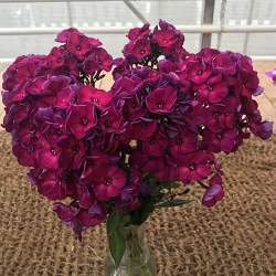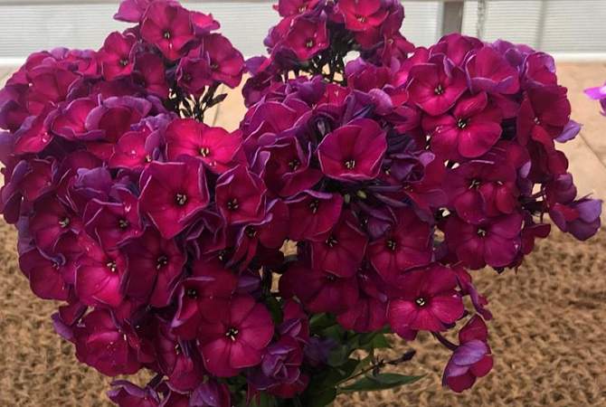 Флокс Эсмеральда. Куст прочный, компактный, высотой 70-80 см. Соцветия средней плотности, округло-конической формы. Цветки колесовидной формы, со слегка загнутыми лепестками, диаметром 4,0-4,2 см, пурпурно-малинового цвета, не выгорают. Срок цветения среднепоздний.