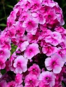 Флокс Феникс. Цветок красно-розовый. Цветок крупный, броской окраски, почти красный с клубничным оттенком, с постепенным осветлением к краям лепестков. Хорошо переносит дожди. Соцветие плотное, овально-пирамидальной формы. Цветение очень длительное, в ранние сроки. Высота 90-100 см.