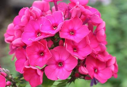 Флокс Финист Ясный Сокол. Цветки диаметром 4 см, очень яркие, малиново-красные с небольшим тёмным колечком. Соцветия большие, пышные. Кусты мощные: 100-110 см. Средний срок цветения. Флокс для среднего плана цветника, когда требуется яркое пятно, поскольку цветок однотонный.