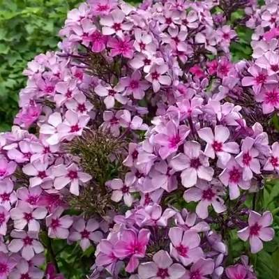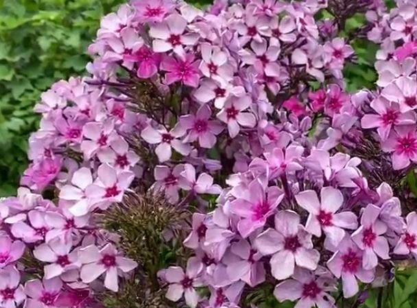 Флокс метельчатый Гаврюша. Размер цветка 3,7 см; высота куста 80-90 см; срок цветения Средний. Пурпурный дымчатый флокс. Соцветие большое средней плотности. Дымка проявляется сразу. Не портится от дождя. Очень красивый флокс.