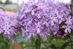 Флокс Гибрид Квасникова. Название условное. Сорт на определении. По мнению Елены Константиновой, он относится к гибридам Б.В. Квасникова, а записи по гибридизации уже утеряны. Мелкие, диаметром 1,5-2,0 см. светло-лиловые цветки в огромных пушистых соцветиях. Высота кустов 80 см. Средний по срокам цветения.