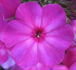 Флокс Гусляр. Густо-пурпурно-малиновый, яркого насыщенного тона. Не выгорает на солнце. Цветок колесовидной формы. Лепестки слабо волнистые. Соцветие шарообразно-коническое, большое, плотное.