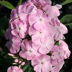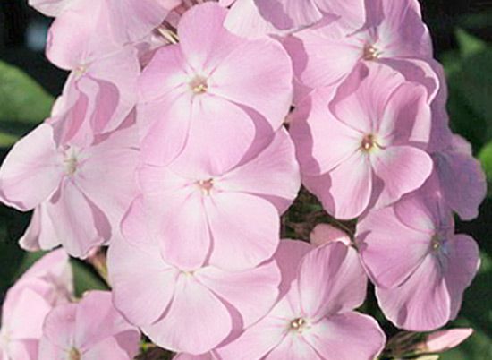 Флокс Helena (Хелена). Цветки до 2,5 см в диаметре, колесовидные, нежно-розовые, очень ароматные. В центре цветка белый размытый глазок. Соцветие округло-коническое. Цветение обильное и продолжительно, с июля по сентябрь. Куст высотой 50-75 см, компактный, побегов много, облиственность хорошая. Высокая устойчивость к мучнистой росе.