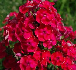 Флокс Иван-Заря. Светло-оранжево-красный с вишневым колечком, яркий, слегка седеет на солнце. Цветок звездчатой формы. Назначение — срезка, групповые посадки. Соцветие очень крупное, ветвистое. Соцветие овально-коническое, большое, рыхлое. Куст прочный, зимостойкий, разрастается средне.