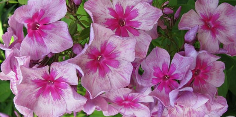 Флокс Калитка. Размер цветка 4.5-5.2 см; высота куста 60-65 см; срок цветения Средний. Цветок колесовидной формы, очень крупный, впечатляющий, пурпурно-сиреневый с живописными серебристо-пепельными жилками и разводами, в центре выразительная малиновая звёздочка. Соцветие среднего размера, округло-коническое, плотное. Куст прочный, мощный, коэффициент разрастания выше среднего. Цветение обильное.