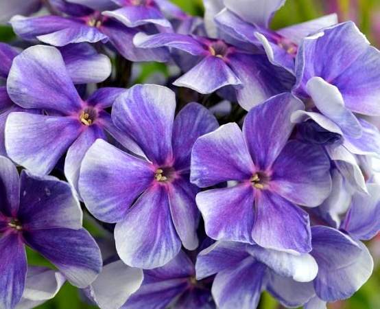 Флокс Капитан. Крупные бело-фиолетовые цветки с пурпурной звездочкой. В прохладную погоду окраска более насыщенная. Соцветия овально-конические. Побеги слегка склоняются. Срок цветения средний. Очень крупные цветки: 4,6 см. Высота 90-100 см.