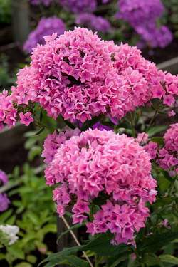 Флокс Карамель Клубничная. Сорт яркий, клубнично-розовый, в саду светится, а вечером будто мерцает. Цветки маленькие, 2 см, похожи на звездочки из-за загнутых кончиков лепестков. Сладкий карамельный аромат. Соцветия очень плотные. Срок цветения средний.