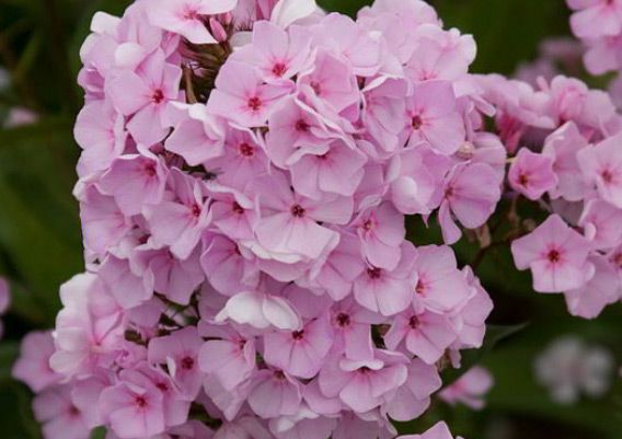 Флокс Карамель Нежная. Великолепный мелкоцветковый сорт. Цветки 2,8 см в диаметре, нежно-молочно-розовые, серебристые, с маленькими, более яркими мазками из центра и розовыми бутонами. Лепестки венчика примыкают друг к другу как у Карамели Клубничной и приподняты. Соцветие округло-коническое, плотное. Куст прочный, компактный, высотой 70 см. Разрастается хорошо. Устойчив к неблагоприятным погодным условиям. Срок цветения средний.