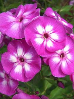 Флокс Katja (Катя). Размер цветка 3 см, высота куста 70 см, срок цветения Средний. Цветки пурпурно насыщенного цвета с широким белым центром. Соцветия округло-конической формы, плотное, выглядит очень аккуратно. Разрастается быстро. Не выгорает.