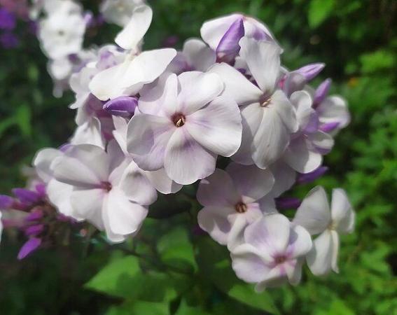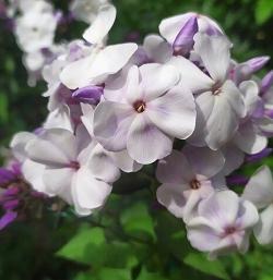 Флокс Кай. Сорт из серии "Сказки". Диаметр цветка 4,8 см. Окраска голубовато-сиреневая с белым центром и сиреневым колечком. Соцветие крупное и плотное, округло-коническое. Высота до 70 см. Стебли прочные. Куст компактный.