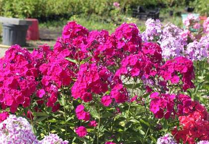 Флокс Kirchenfürst (Кирхенфюрст). Цветки 3,0-3,5 см, уникально яркие: красно-пурпурные, с пылающим колечком. Обратная сторона лепестков очень светлая, почти белая. Высота куста 70-80 см, Средний срок цветения.