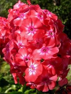 Флокс Коралл (Фостера). Сорт яркий, нарядный, отлично зимует! Цветки крупные, насыщенно-розово-коралловые с белой звездой и пурпурным глазком. Соцветие округлое, средней плотности.