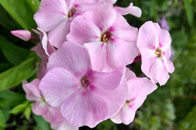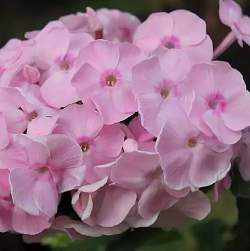 Флокс Крошечка-хаврошечка. Нежно-розовый с тонким малиновым колечком. Хорошо нарастает, соцветие округло-шаровидное, плотное. Куст низкий (30-35 см), прочный, предназначен для бордюров. Один из самых низкорослых сортов, при этом довольно крупный венчик (4,2 см) и привлекательное соцветие. Цветет очень продолжительно. Срок цветения средне-поздний.