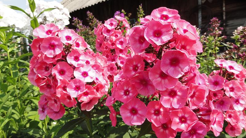 Флокс Larissa (Лариса). Цветки плотные, красивой колесовидной формы. Соцветия плотные, округло-конические. Куст невысокий, особенно хорош для переднего плана и бордюров.