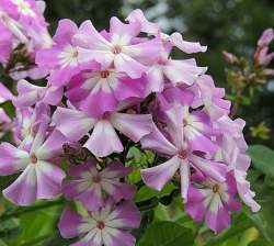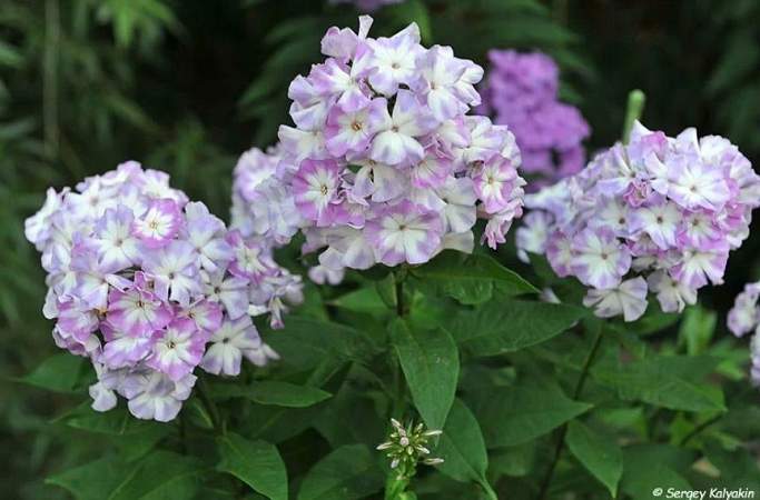 Флокс метельчатый Лунный Камень. Сиренево-голубоватые крупные цветки с большим белым центром. По мере цветения оттенок меняется на серовато-голубой. Лепестки разделены и слегка отогнуты. Куст прочный, компактный, зимостойкий. Сорт очень красив и необычен.