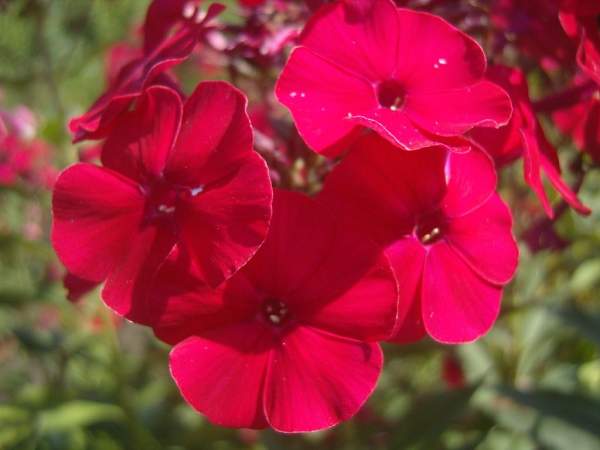 Флокс Любимец Гаганова. Венчик 3,5-3,7 см в диаметре. Высота до 45 см. Срок цветения средний. Цветки яркие, блестяще-кроваво-красные, ровного густого тона, бархатистые, не выгорают. Соцветие большое, очень плотное, шарообразное. Цветение с начала августа. Выделяется из всех красных. Начало цветения 1-5 августа, конец цветения — 10 сентября.