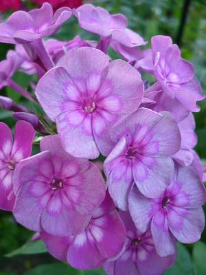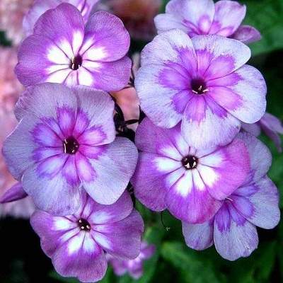 Флокс Magic Blue (Мэджик Блю). В роспуске лавандовый с белой звездой. Затем на лепестках появляется серебряное напыление, в центре проступает рисунок миниатюрного цветка.