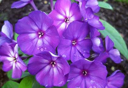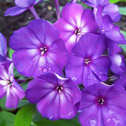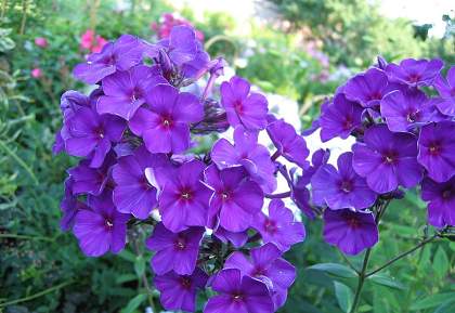 Флокс Магия. Сине-фиолетовый, пурпурного оттенка почти нет. В центре цветка посветление. Не выгорает. Соцветие плотное, средней величины. Стебли прочные, куст прямостоячий. Красивый темно-зеленый оттенок листвы. Устойчивый к болезням. Разрастается умеренно. Лидер выставки 1990 г. В сумерках флокс выглядит тёмно-синим. Зимует стабильно.