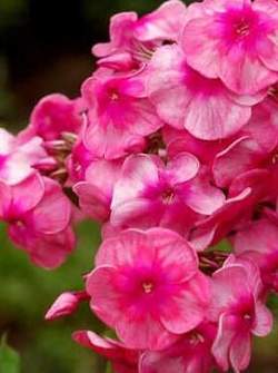 Флокс Мечта о Счастье. Необыкновенно живой, карамельно-розовый, теплый основной тон с серебристой дымкой. Распускается уже с дымкой, которая со временем становится более светлой и менее прозрачной. На дымчатом фоне небольшая розовая штриховка. Большой розовый центр в виде звезды с карминовым глазком и лососевым ореолом, по мере цветения становится более темным карминово-розовым.