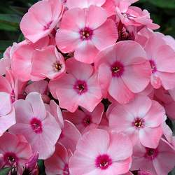 Флокс Милена. Куст невысокий, раскидистый, высотой 55–65 см. Соцветия плотные, овально-конической формы. Цветки диаметром до 4 см, нежно-розовые с пурпурным глазком, очаровательные. Цветет в июле–августе. Неприхотлив, зимостоек.
