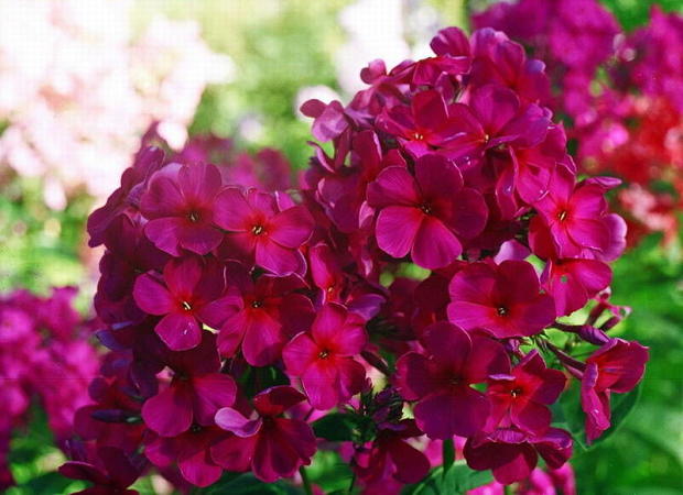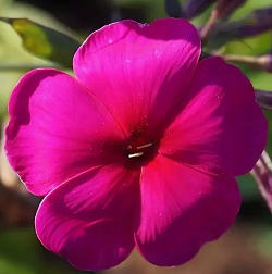 Флокс Мишель Мерсье. Пурпурный с ярким карминным центром и желтыми тычинками, бархатистый, сияющий на солнце, не выгорает. Очень красивый цвет.