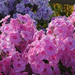 Флокс Мисс Ольга. Цветок размером 4,3-4,7 см. Высота куста 80-90 см. Цвет светло-розовый холодного тона с плотной фактурой лепестков, тонким розовым колечком и штриховкой вдоль жилок. Цветки крупные, а соцветия плотные. Куст прочный, многостебельный, хорошо облиственный. Сильный и надёжный сорт, отлично разрастается.