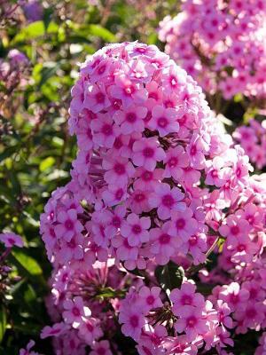 Флокс Miss Pepper (Мисс Пеппер). Розовый с малиновым глазком. Соцветие крупное, ветвистое. Стебли прочные, куст компактный. Хорошо разрастается. Цветок 2,5 см. Очень устойчив к болезням.