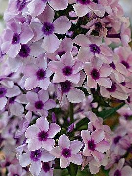 Флокс Мозаика. Размер цветка 2,5 см, высота куста 70-80 см, срок цветения средний. Нежно-розовый, теплый, с очень выразительным ярким пурпурно-малиновым глазком, темнеющим к зеву цветка. Яркое контрастное сочетание.
