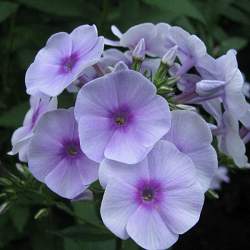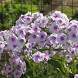 Флокс Наяда. Цветки размером 3,5-3,8 см. Куст высотой 80-90 см. Цвет светлый лилово-голубоватый с пурпурным колечком. Синеющий в сумерках. Очень крупные и плотные соцветия, долгое цветение. Кусты прочные, разветвлённые, большие. Разрастается и зимует отлично.