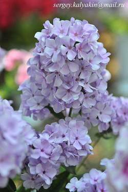 Флокс Неглинка. Имеет необычную серо-голубую окраску. В сумерках становится более интенсивно-голубым. Эффектен, выделяется в посадках флоксов благодаря крупным красивым соцветиям и оригинальному оттенку. Высота 80 см. Срок цветения средний.